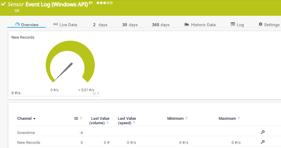 The Event Log (Windows API) sensor monitors event log entries via the Windows application programming interface (API).