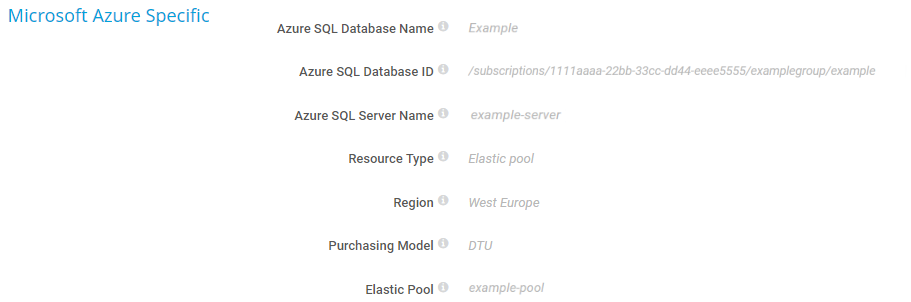The Microsoft Azure SQL Database sensor monitors the metrics of an Azure SQL Database (single database or elastic pool) in a Microsoft Azure subscription.