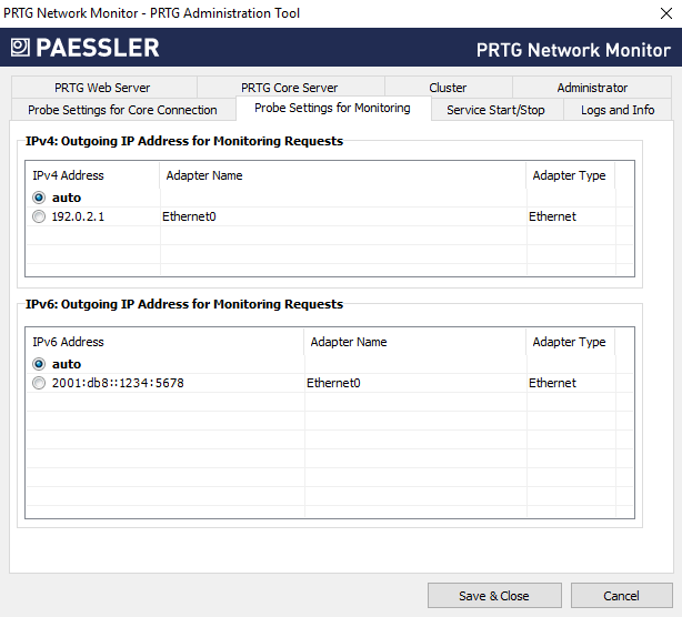 • If more than one IP is available on the system, you can specify the IP address that PRTG uses for the outgoing monitoring requests of certain sensors.