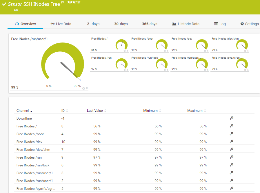 We plan to discontinue this sensor type in a future version of PRTG. We recommend that you use the SSH INodes Free v2 sensor instead.