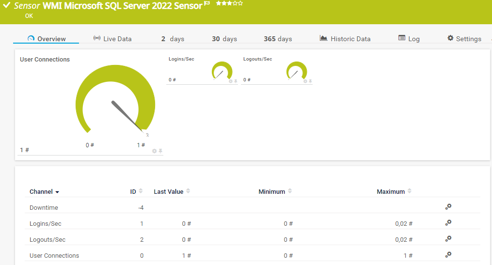 The WMI Microsoft SQL Server 2022 sensor monitors the performance of a Microsoft SQL Server via Windows Management Instrumentation (WMI).